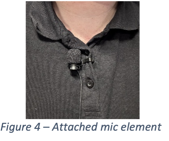 microphone element to your collar/lapel area. Please ensure there is nothing obstructing the microphone (Figure 4).