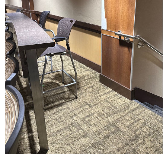 1101 – open “seat” area for a table – removable table available tall bar/table area in back of room/stairs to get to it